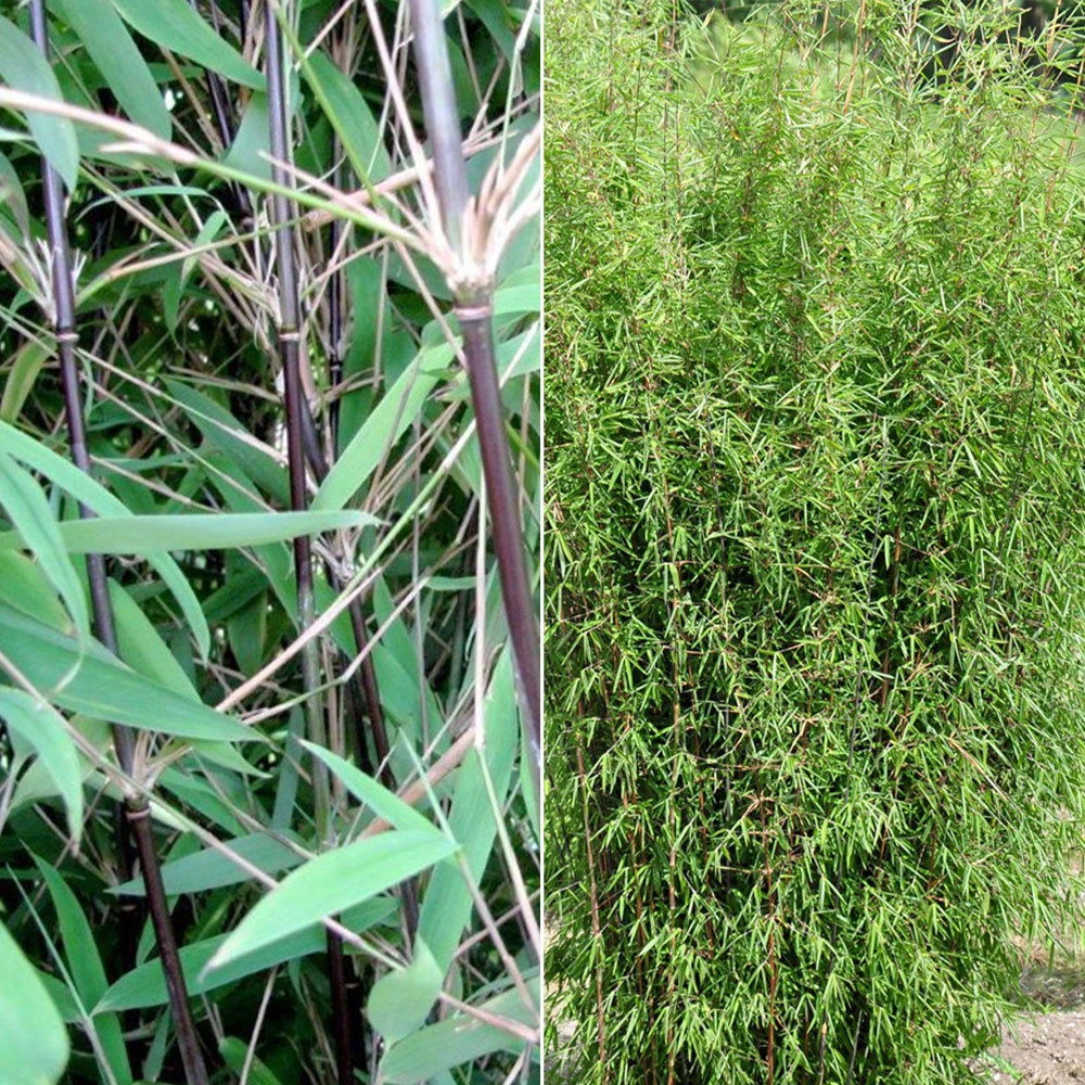 Unsere Bambus-Kollektion ‚Dekorative Halme‘ bietet Ihnen dieses originelle Rot-und-Schwarz-Set als ein außergewöhnliches Highlight für Ihr Grundstück oder Ihren Balkon. Sie erhalten zum einen die Fargesia-Hybride ‚Jiuzhaigou 1‘, den Roten Bambus. Seine bis zu einem Zentimeter dicken Halme sind rötlich gefärbt, wobei Sie diesen Effekt noch mehr verstärken können, indem Sie die unteren Laubblätter entfernen. Sind die Halme der Sonne ausgesetzt, bekommen diese eine besonders intensive Färbung. Der Rote Bambus ist mit einer Wuchshöhe bis zu 300 Zentimetern mittelgroß und benötigt keine Rhizomsperre. Zum anderen enthält unser-Set die Fargesia nitida ‚Black Pearl‘, den Schwarzen Gartenbambus, mit anfangs dunkelroten und später markanten schwarzen Halmen. Die beiden Bambussorten profitieren von einem sonnigen Standort, vertragen aber auch Halbschatten sehr gut. Die Halmfarben bilden sich am sonnigen Standort besonders deutlich aus. Am halbschattigen Standort bleiben sie rötlich/grün. Beide Sorten sind horstbildend, d.h. Sie benötigen keine Rhizomsperre. Im Kübel empfehlen wir Winterschutz.
