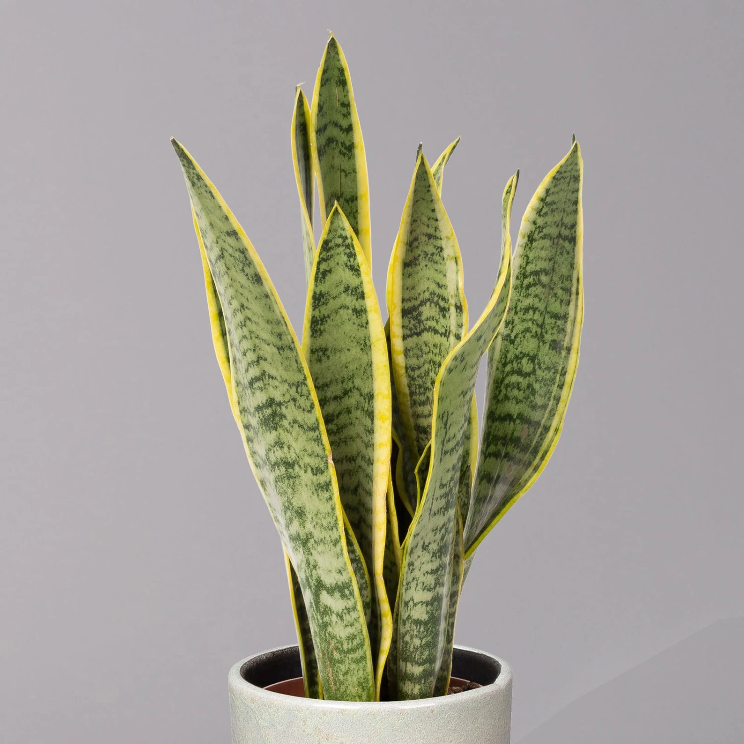 Der Bogenhanf (Sansevieria trifasciata ‚Laurentii‘) gilt als eine der robustesten und pflegeleichtesten Zimmerpflanzen überhaupt und ist auch unter den Namen ‚Sansevierie‘ oder ‚Schwiegermutterzunge‘ bekannt. Charakteristisch sind die riemenartig festen, fleischigen Blätter, deren Blattränder beidseitig gelbe Querstreifen aufweisen. Die grundständigen Blätter entspringen einem Rhizom und enden aufrecht in einer Spitze. Bei guter Pflege kann der Bogenhanf über einen Meter hoch werden.