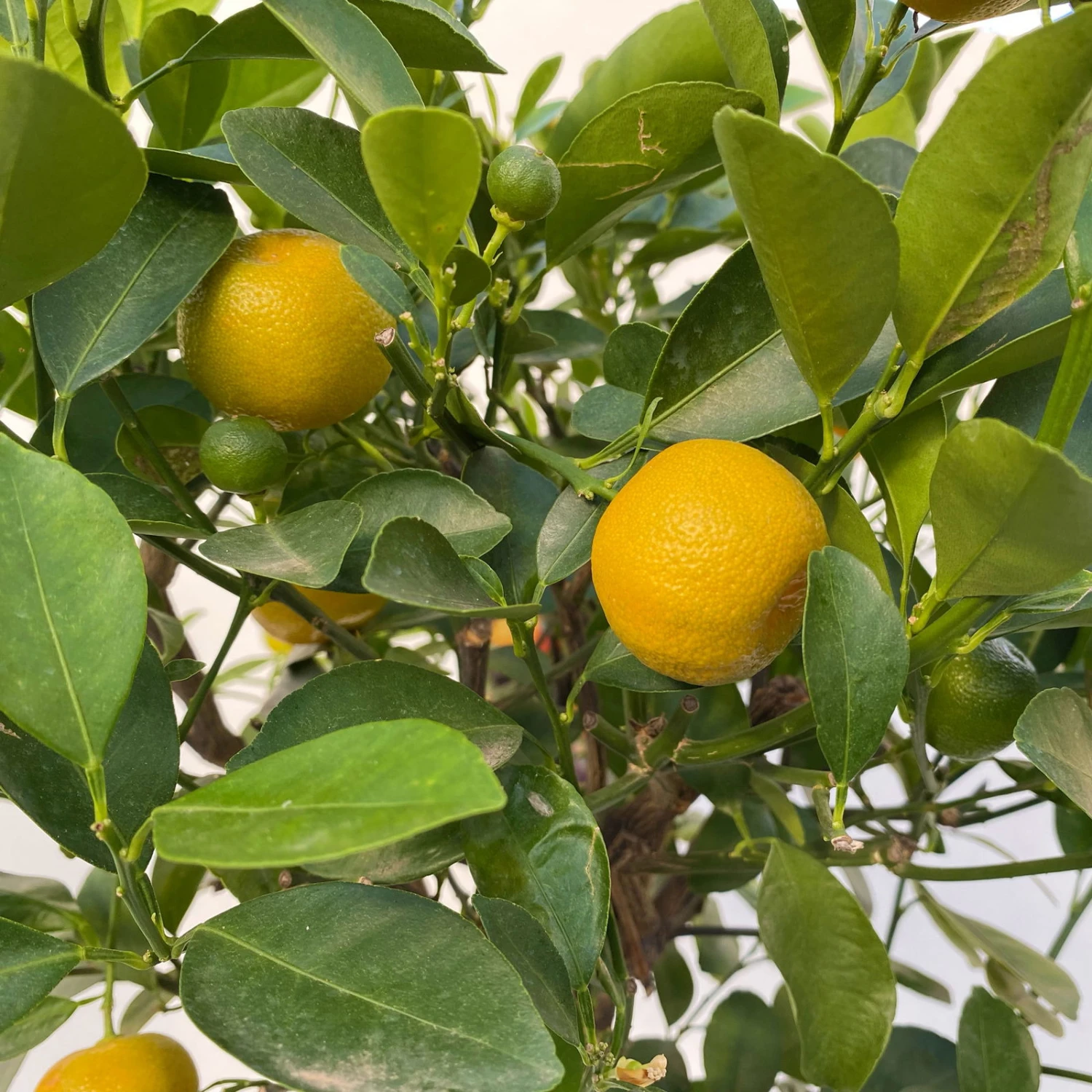 Bitte beachten Sie, dass das Calamondinbäumchen nicht winterhart ist und frostfrei überwintert werden muss. Hierfür ist ein heller Standort bei 3-15ºC ideal. Es kann sogar an einem Südfenster im Wohnzimmer überwintern.