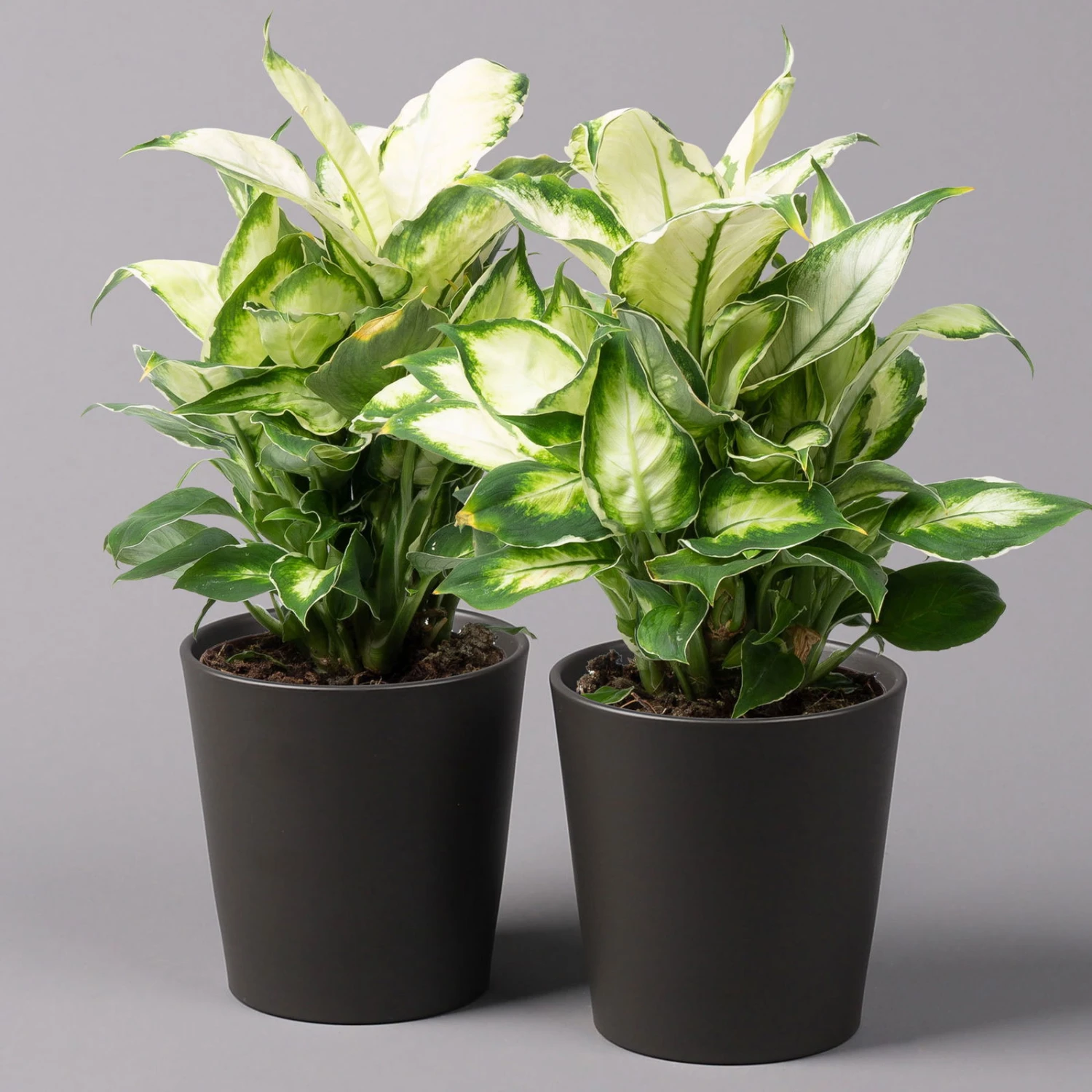 Dieffenbachie ‚Cool Beauty ‚ Mit Keramiktopf Anthrazit, Topf-Ø 12 Cm, 2er-Set