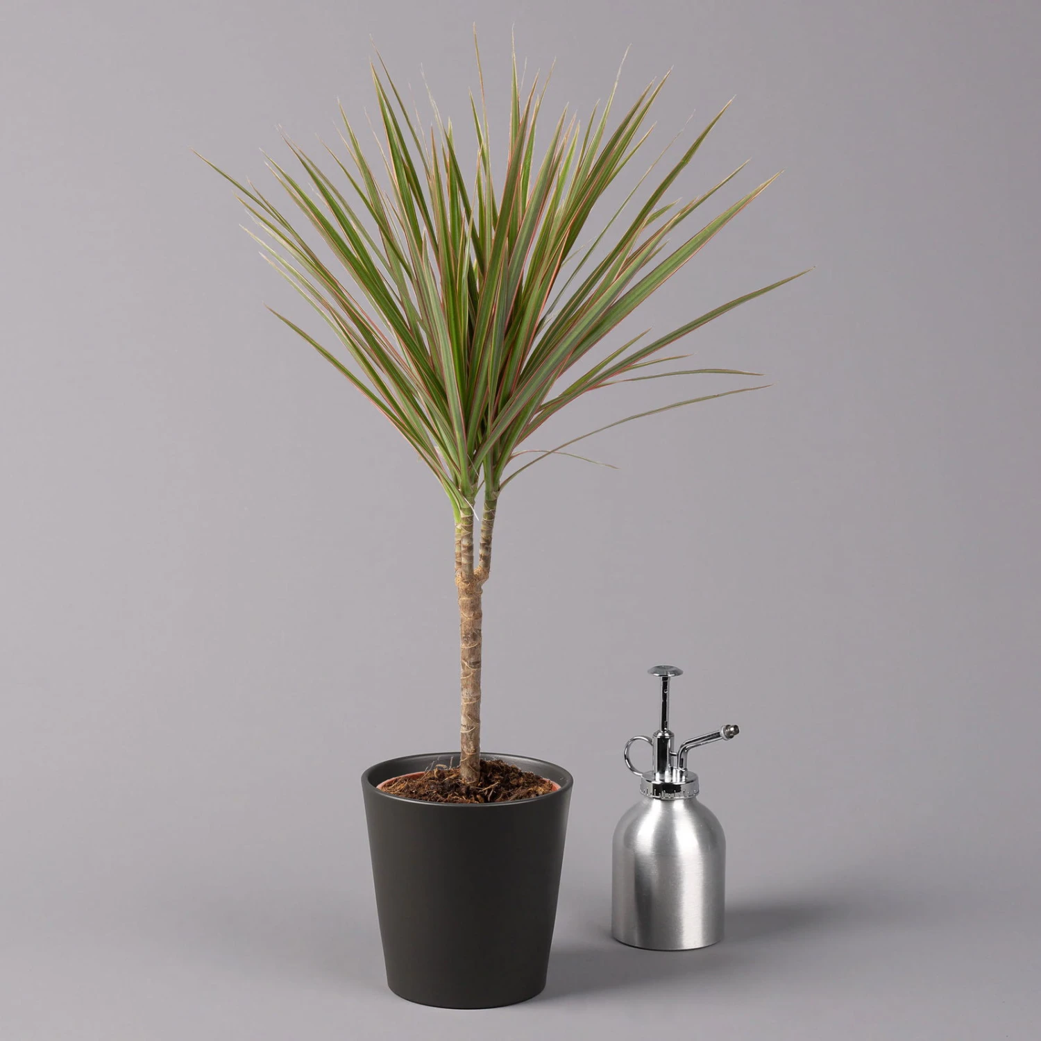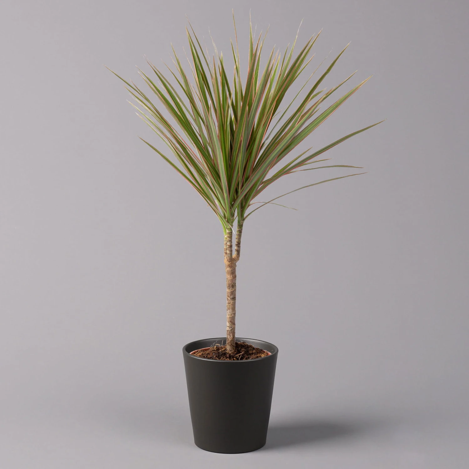 Er ist exotisch, auffällig gemustert und üppig geformt: Der Drachenbaum, auch Dracaena marginata ‚Bicolor‘ genannt. Diese Zimmerpflanze lässt sich an nahezu jeden Standort in Ihrer Wohnung oder im Büro aufstellen und schafft dadurch ein einzigartiges Ambiente. Nicht nur optisch wertet der Drachenbaum den Innenbereich auf, sondern filtert auch Schadstoffe aus der Luft. Fühlen Sie sich wie in der freien Natur und genießen Sie herrlich frische Luft! Die roten Streifen der schmalen Blätter sind zudem ein wahrer Hingucker. Nicht umsonst verdient diese Pflanze ihren Namen, denn das Muster erinnert an ein beeindruckendes Fabelwesen der chinesischen Kultur. Um diese Struktur zu erhalten, sollten Sie regelmäßig ein wenig Grünpflanzendünger zum Substrat geben. Tipp: Verfärben sich die Blätter und weisen gelbe Flecken auf, sollten Sie die Wasserzufuhr etwas reduzieren.