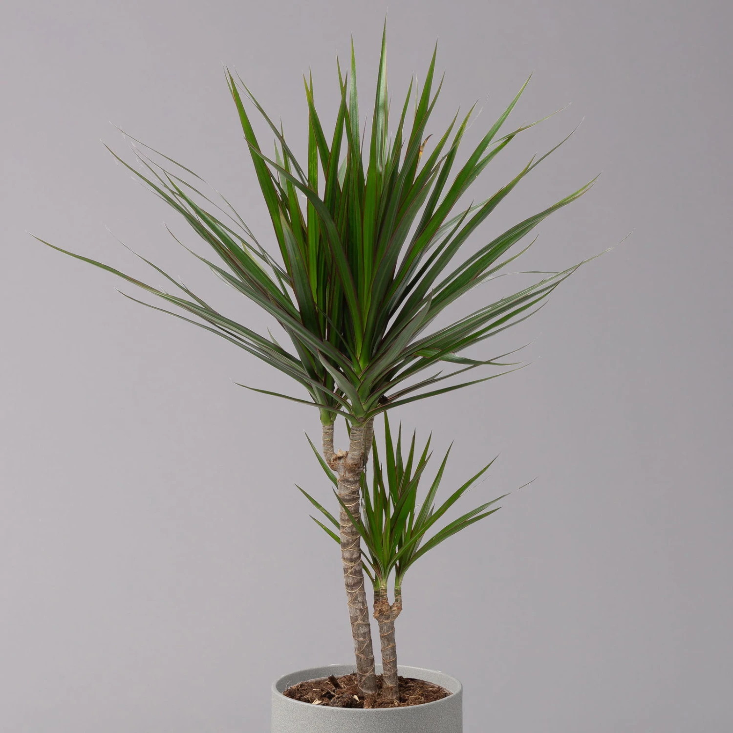 Die Dracaena marginata setzt farbenfrohe Akzente und begeistert mit roten Streifen und auf den Blättern. Die optisch attraktive Pflanze vermag außerdem mit einer weiteren Eigenschaft zu punkten: Die Drachenbäume entziehen nämlich der Raumluft mehrere giftige Substanzen, darunter Benzole und Formaldehyde. Da diese Verbindungen nicht zuletzt von modernen elektronischen Geräten emittiert werden, ist der Drachenbaum zur Begrünung von einem Büro und dem Homeoffice bestens geeignet. Suchen Sie für Ihren Drachenbaum einen hellen Platz ohne direkte Sonneneinstrahlung aus und seien Sie sparsam beim Gießen. Das subtropische Gewächs mag es warm.