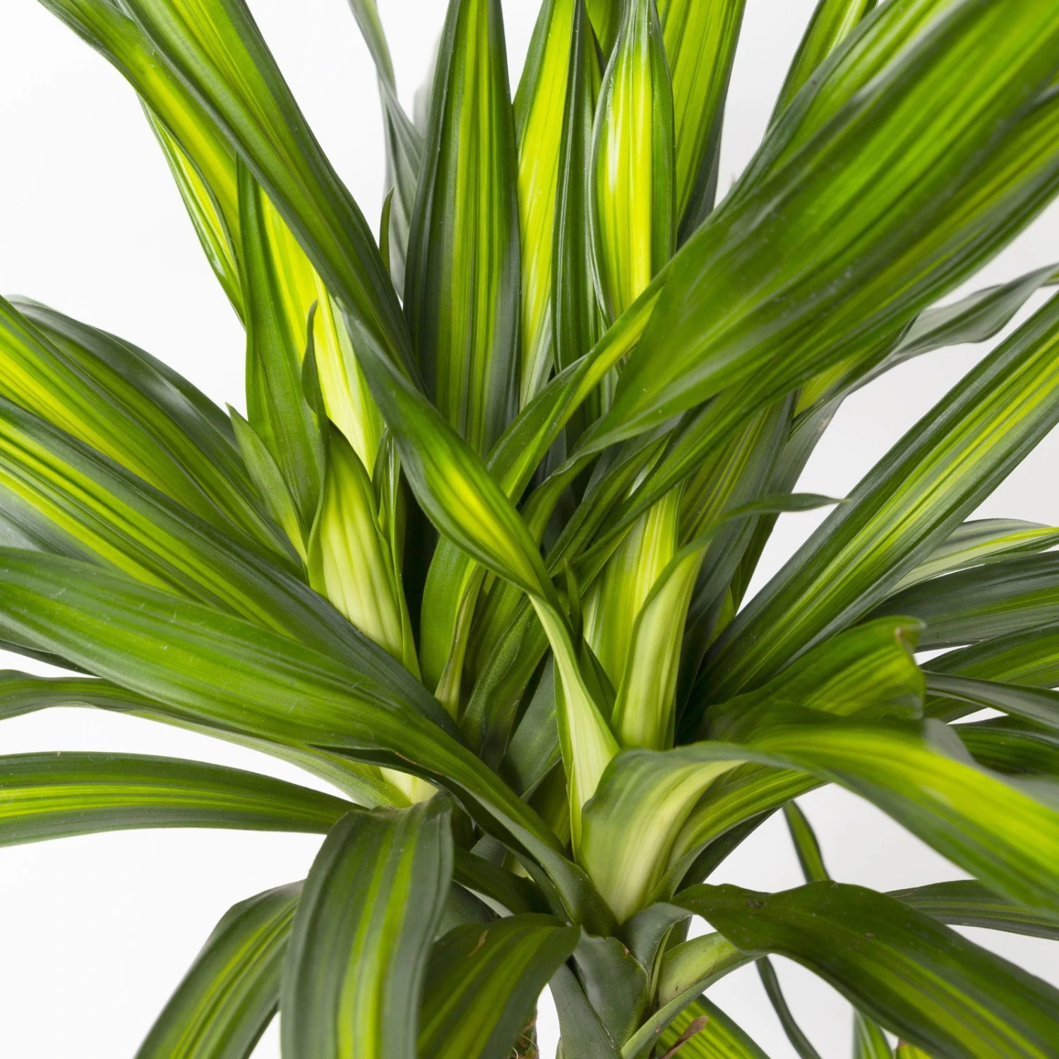 In einem 3er-Tuff mit unterschiedlich hohen Stämmen sieht die Dracaena ‚Riki‘ besonders dekorativ aus. Der Drachenbaum begeistert mit ihren lanzettförmigen Blättern und einer verspielten Kombination aus mehreren Grüntönen. Ein Drachenbaum eignet sich bestens zur Begrünung von Räumen mit belastetem Klima, denn diese ungewöhnliche Pflanze funktioniert wie ein effizienter Biofilter: Die Dracaena entzieht nämlich der Raumluft mehrere schädliche Substanzen, darunter Formaldehyde und Benzole. Das Spargelgewächs fühlt sich an hellen und warmen Standorten ohne direkte Sonne ganz wohl. Die Pflanze braucht nicht sonderlich viel Wasser und profitiert von moderaten Düngemittelgaben während der Vegetationsperiode.
