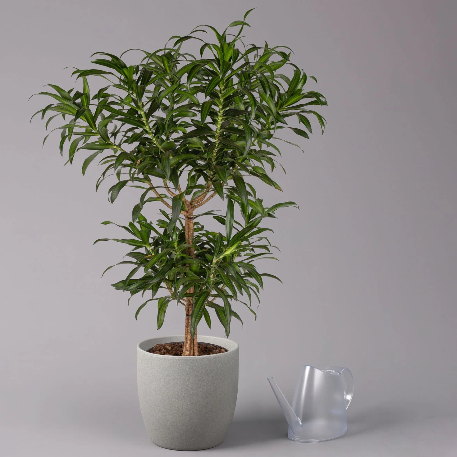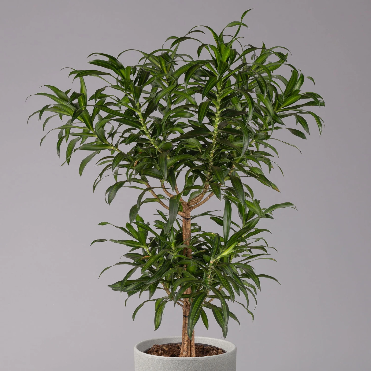 Die Dracaena reflexa ‚Song of Jamaica‘ begeistert mit einer attraktiven Mischung aus zarten grünen Tönen und sieht als Solitär oder als Teil des aufwendig gestalteten Begrünungskonzepts gleichermaßen effektvoll aus. Ihr Drachenbaum versorgt Sie mit einer Menge Sauerstoff und filtert außerdem Schadstoffe wie Formaldehyd oder Benzol aus der Luft heraus. Nicht zufällig zählen die Drachenbäume zu den bekanntesten Raumklimapflanzen. Die Pflege einer Dracaena gestaltet sich unkompliziert, weswegen diese Pflanze sogar für Anfänger gut geeignet ist. Gießen Sie das Spargelgewächs sparsam, vermeiden Sie Staunässe und pflegen Sie Ihre Dracaena an einem warmen und hellen Standort ohne direkte Sonne.