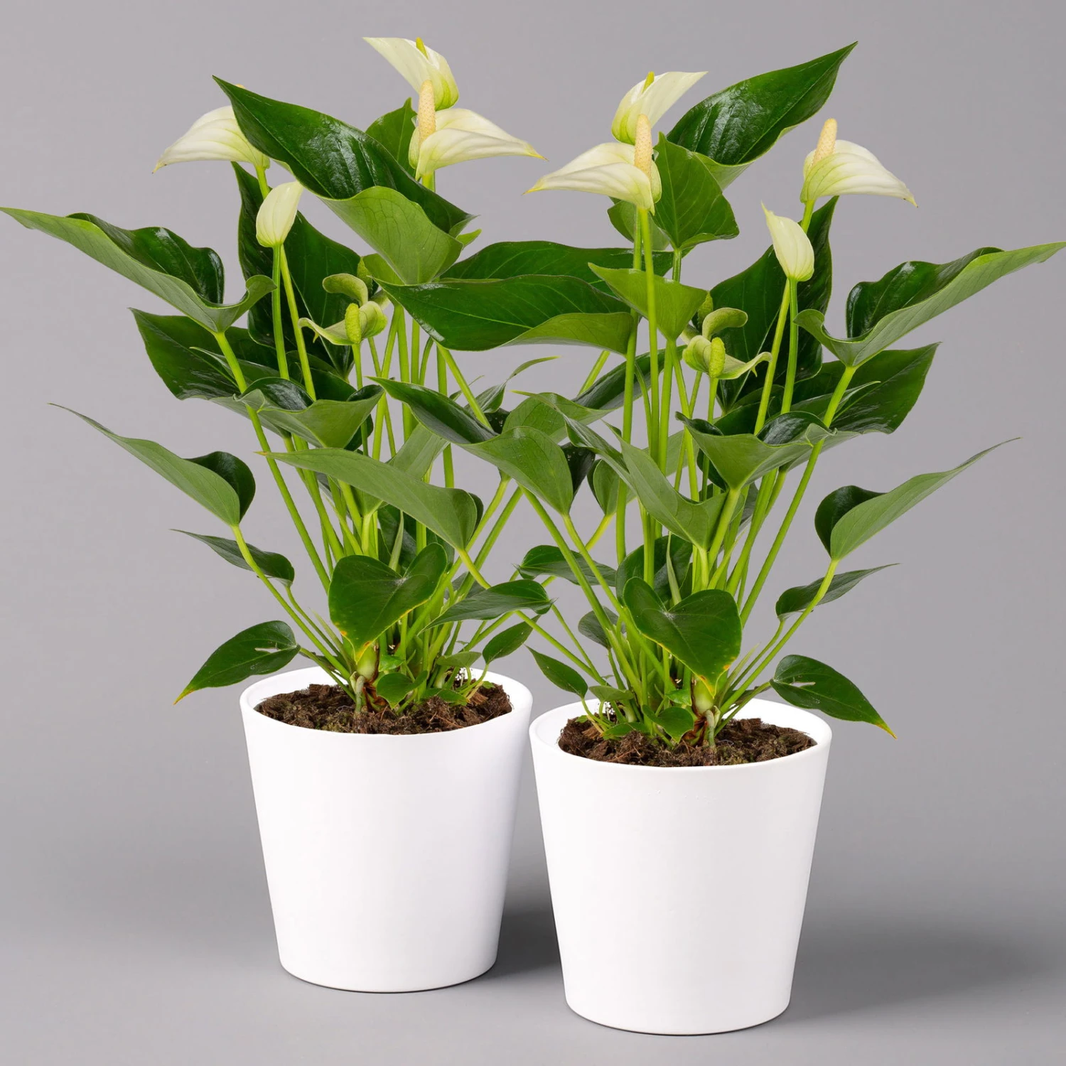 Flamingoblumen Mix Inkl. Übertopf Dallas Weiß, Topf-Ø 12 Cm, 2er-Set