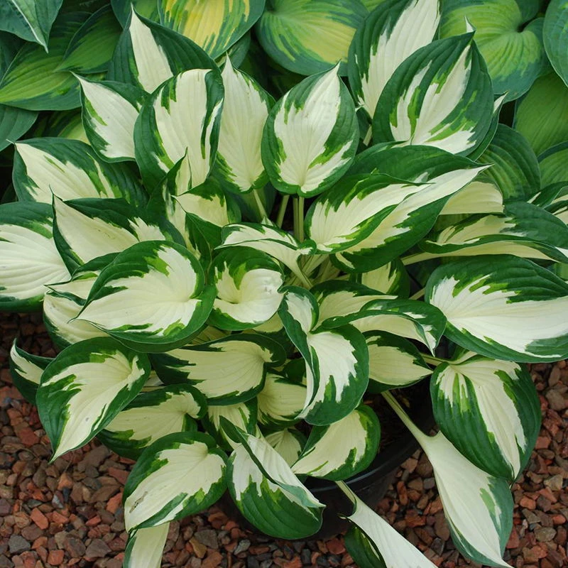 Die Funkie ‚Fire and Ice‘ (Hosta ‚Fire and Ice‘) ist eine zweifarbige Garten-Funkie, die mit weißen, von einem grünen Rand gesäumten Blättern begeistern. Während der Blütezeit von Juli bis August wird die Schönheit der Blätter durch lavendelförmige Blüten unterstrichen. Diese herrliche Zwergsorte wird zwischen 30 und 40 cm hoch und ist somit geradezu prädestiniert für kleine Gärten oder den Pflanzkübel auf Balkon und Terrasse. Ob einzeln oder in Gruppen im Garten ausgepflanzt oder als Kübelpflanze, die frostverträgliche Hosta ‚Fire and Ice‘ bevorzugt einen durchlässigen, humosen Boden sowie einen halbschattigen Standort.