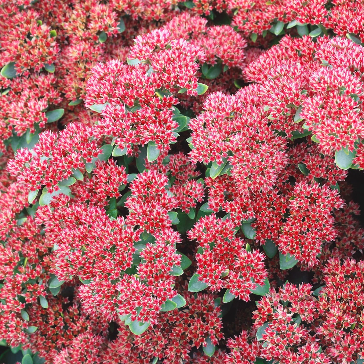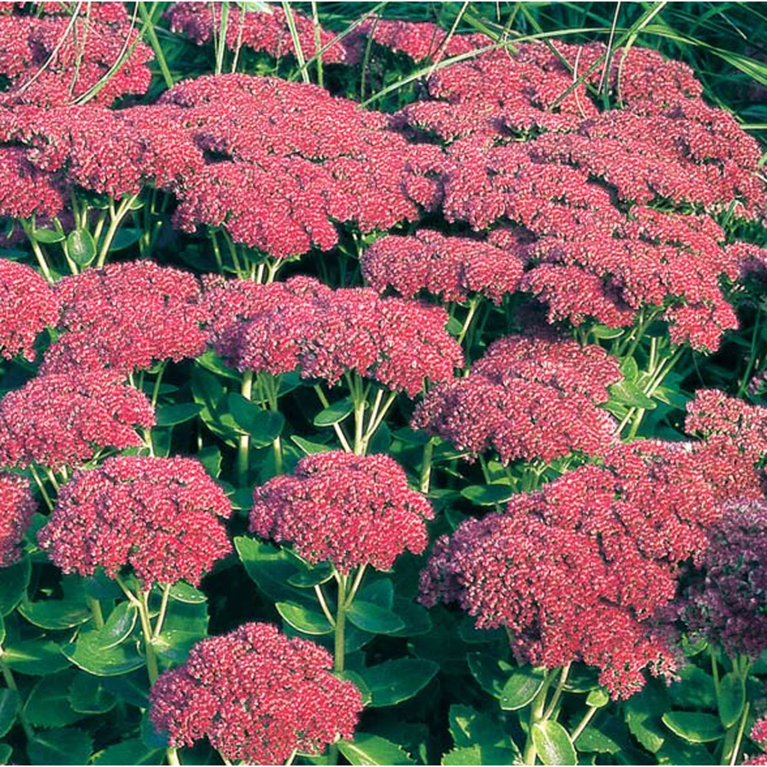 Das Große Garten-Fettblatt ‚Herbstfreude‘ (Sedum telephium ‚Herbstfreude‘) wächst buschig, aufrecht und erreicht eine Wuchshöhe von etwa 70 cm. Von Juli bis September schmückt sich die winterharte Staude mit kleinen, rosafarbenen Blüten, die in einem großen Blütenstand zusammenstehen und wunderbar mit den dickfleischigen, grünen Blättern harmonieren. Pflanzen Sie die anspruchslose und hitzebeständige Staude im Steingarten oder in Beet und Rabatte, verwenden Sie sie zur Grabbepflanzung oder in Kästen und Kübeln am Hauseingang, auf Balkon oder Terrasse. Bevorzugt wächst das große Garten-Fettblatt ‚Herbstfreude“ in durchlässigem, nährstoffreichem Boden an einem sonnigen Platz. Auch im Winter sind die dann abgeblühten Blütenstände eine Zierde, wenn sich dort der Raureif verfängt, deshalb schneiden Sie die Blütenstände gerne erst im zeitigen Frühjahr ab.