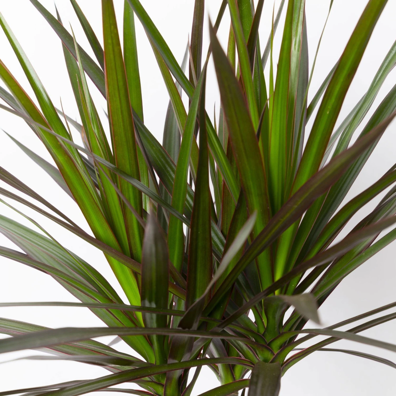 Mit einer filigranen Blattzeichnung und aparten Streifen in Dunkelrot ist die Dracaena marginata ‚Magenta‘ eine außergewöhnliche Erscheinung. Diese Zimmerpflanze lässt sich als Solitär oder als organisches Element der Raumbegrünung mit tropischem Flair gleichermaßen erfolgreich in Szene setzen. Wir empfehlen die Drachenbäume ganz besonders für den Einsatz in einem Büro, da diese Pflanze der Luft zahlreiche Schadstoffe entzieht. Aber auch als zuverlässiger Sauerstofflieferant wird die Dracaena ‚Magenta‘ hochgeschätzt. Dabei bleibt der Pflegeaufwand ausgesprochen gering, denn einem Drachenbaum reichen für eine harmonische Entwicklung sparsame Wassergaben und gelegentliches Düngen vollkommen aus. Sie dürfen Ihre Dracaena entweder im Halbschatten oder an einem hellen Standort pflegen. Vermeiden Sie jedoch unbedingt direkte Sonne (über den ganzen Tag), Zugluft und Staunässe.