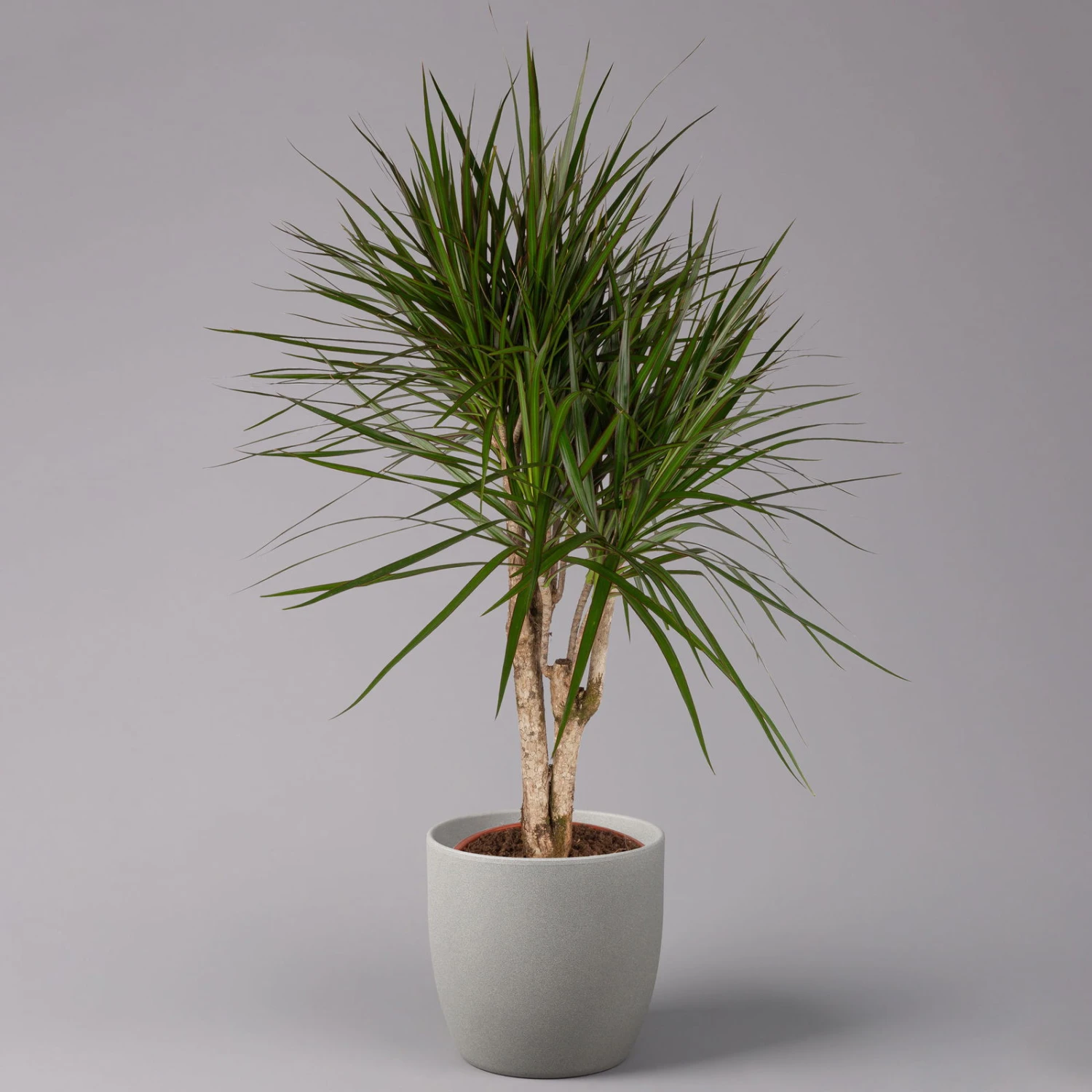 Diese Dracaena marginata begeistert mit ihrem dichten, verzweigten Wuchs und eignet sich unter anderem als exotischer Raumteiler oder sympathischer, grüner Akzent. Der Drachenbaum macht in Wohn- oder Geschäftsräumen eine gleich gute Figur und punktet unter anderem mit seiner Eigenschaft, der Luft diverse Schadstoffe wie Benzol oder Xylol nachhaltig zu entziehen. Genau deshalb steht die ‚Dracaena marginata‘ hoch in der Gunst aller Zimmerpflanzenliebhaber und wird gerne als eine Wohlfühlpflanze bezeichnet. Um optimale Wachstumsbedingungen für Ihren Drachenbaum zu schaffen, suchen Sie für die Dracaena marginata einen hellen Standort ohne direkte Sonne aus. Es gilt, beim Gießen eher sparsam zu sein und Staunässe unbedingt zu vermeiden.