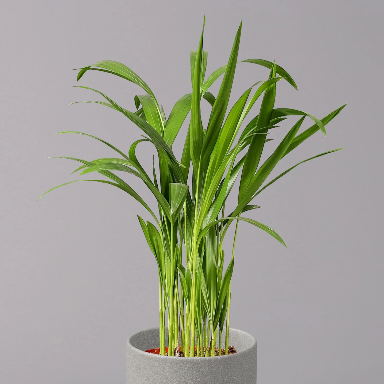Die Goldfruchtpalme (Dypsis lutescens) ist ein anspruchsloses und dekoratives Palmengewächs von der afrikanischen Insel Madagaskar. Ihre Goldfruchtpalme fühlt sich an halbschattigen Standorten wohl und ist vor direkter Sonneneinstrahlung zu schützen. Pflegen Sie die Dypsis lutescens in den Innenräumen bei Temperaturen über 15 Grad Celsius. Für einen beheizten Wintergarten ist diese Zimmerpflanze genauso wie für Ihre Wohnküche oder Diele die richtige Wahl. Von April bis Oktober legt die Goldfruchtpalme einen hohen Wasserbedarf an den Tag, in der Winterzeit dürfen Sie die Wassergaben reduzieren. Am besten eignet sich zum Gießen lauwarmes und weiches Wasser, auch Sprühbäder tun Ihrer Zierpalme gut. Die Goldfruchtpalme verbessert nachweislich das Raumklima, indem sie der Luft mehrere Giftstoffe entzieht.