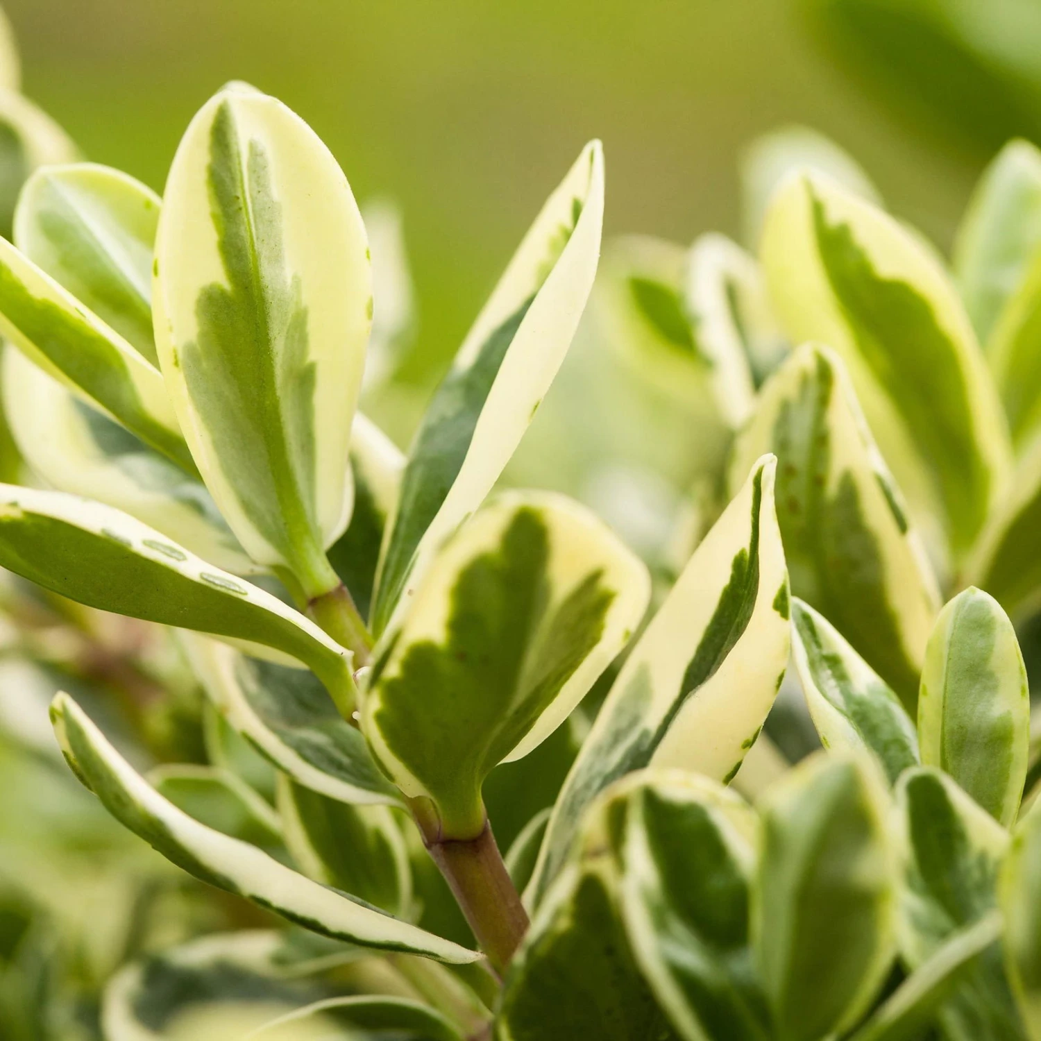 Die großen, buntlaubigen, lang gestreckten Blätter der Strauchveronika (Hebe andersonii Addenda®) überzeugen inden Farben Grün und Weiß. Die Pflanze wächst aufrecht und buschig. Die Strauchveronika kann eine Wuchshöhe von 40 bis 60 cm erreichen und auch entsprechend breit werden.