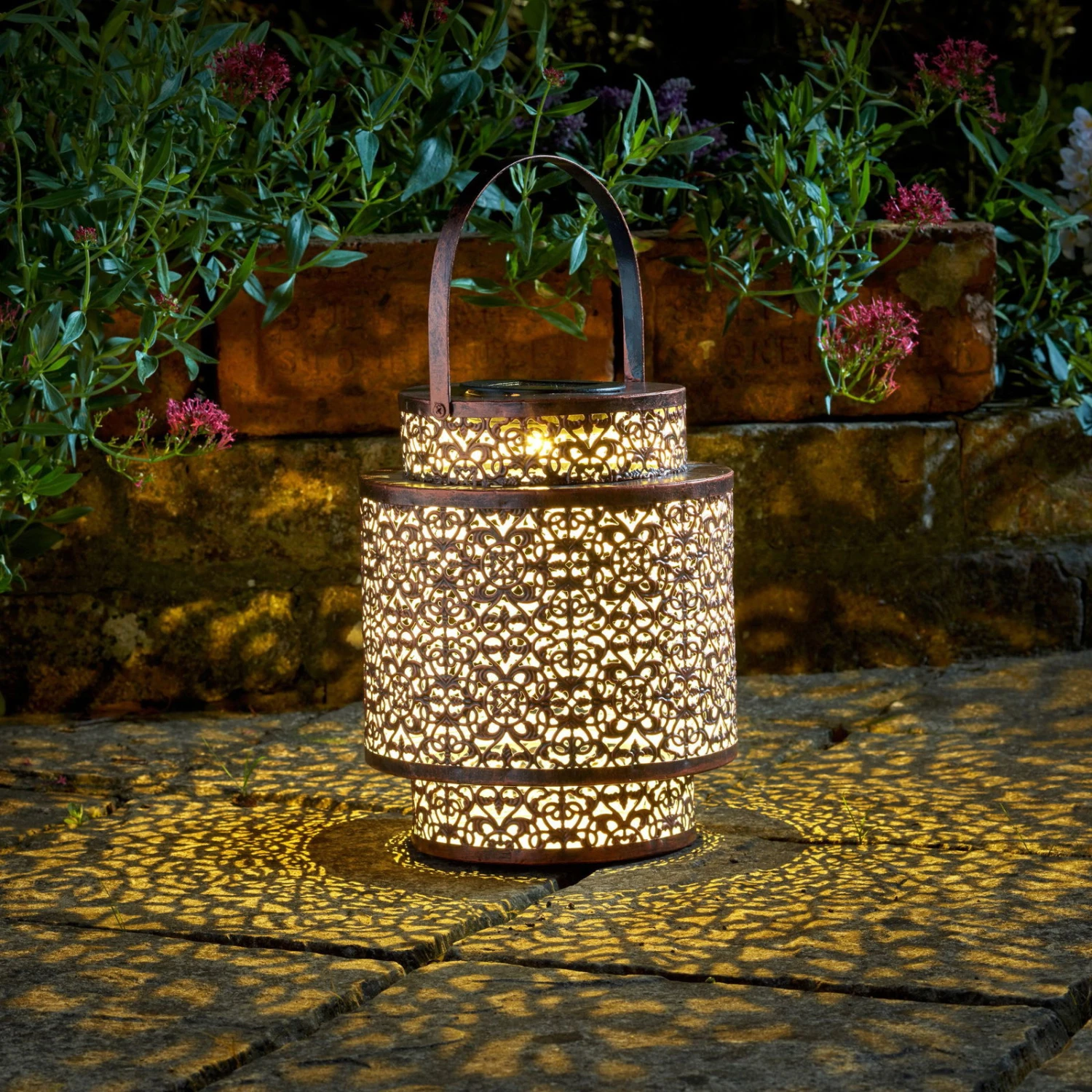 Die praktische und wunderschöne Solarlaterne „Tangier“ aus Metall begeistert im nordafrikanischen Design und trendiger Farbe. Die Solarlaterne ist für den Outdoorbereich bestens geeignet und dafür konzipiert. Am Tag überzeugt die Solar Laterne als charmante Deko, bei Dunkelheit erhellt sie Ihren Garten, die Terrasse, den Balkon oder den Weg zum Haus. Die solarbetriebene Leuchte besitzt ein warmweißes, angenehmes Licht und bringt Helligkeit nach Draußen.