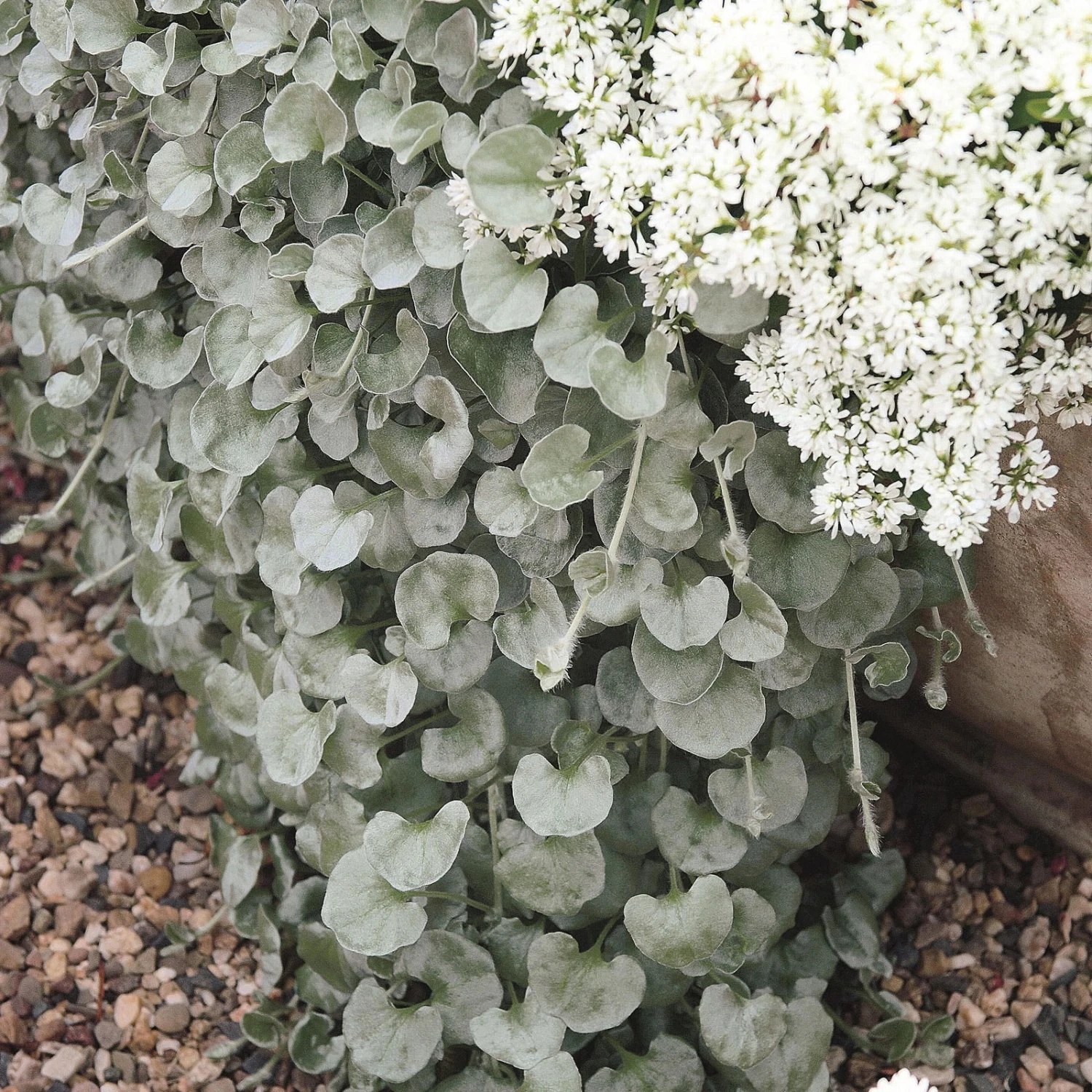Der Silberregen (Dichondra argentea) ist dank seiner überhängenden Wuchsform eine nahezu perfekte Wahl für Kübel, Töpfe oder Balkonkästen. Aber auch im Beet oder auf dem Grab macht er bodendeckend wachsend eine gute Figur. Ein nährstoffreiches und durchlässiges Substrat begünstigt das Wachstum. Zwischen Mai und September blüht die Dichondra argentea, jedoch bleiben die gelben Blüten eher unscheinbar.