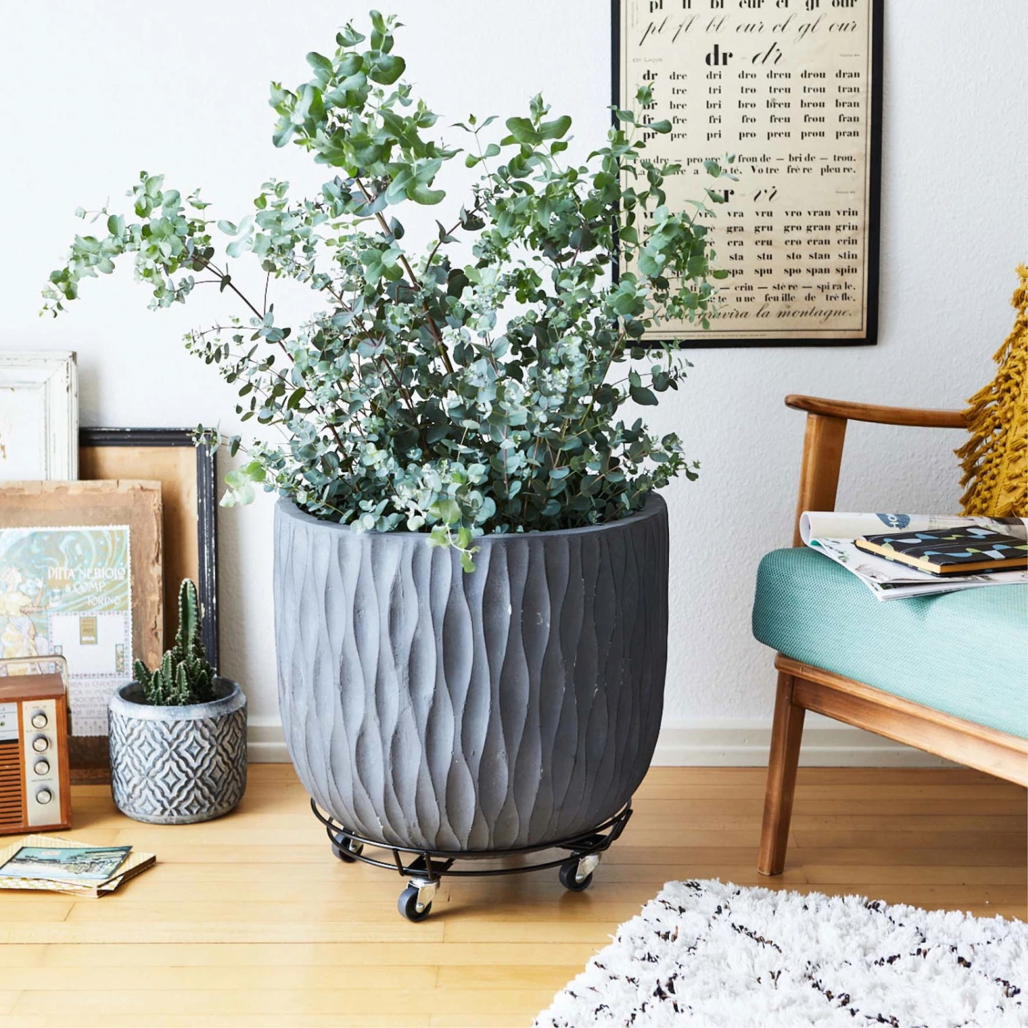 Pflanzenkübel mit einem Gewicht von bis zu 100 Kilogramm sind für diesen eleganten Roller kein Problem. Der Multi Roller GH 0934 mit vier Laufrädern ist aus pulverbeschichtetem, stabilem Stahldraht gefertigt und leicht zu manövrieren. Dank des durchdachten Designs rutschen die Pflanzgefäße beim Transport nicht ab.