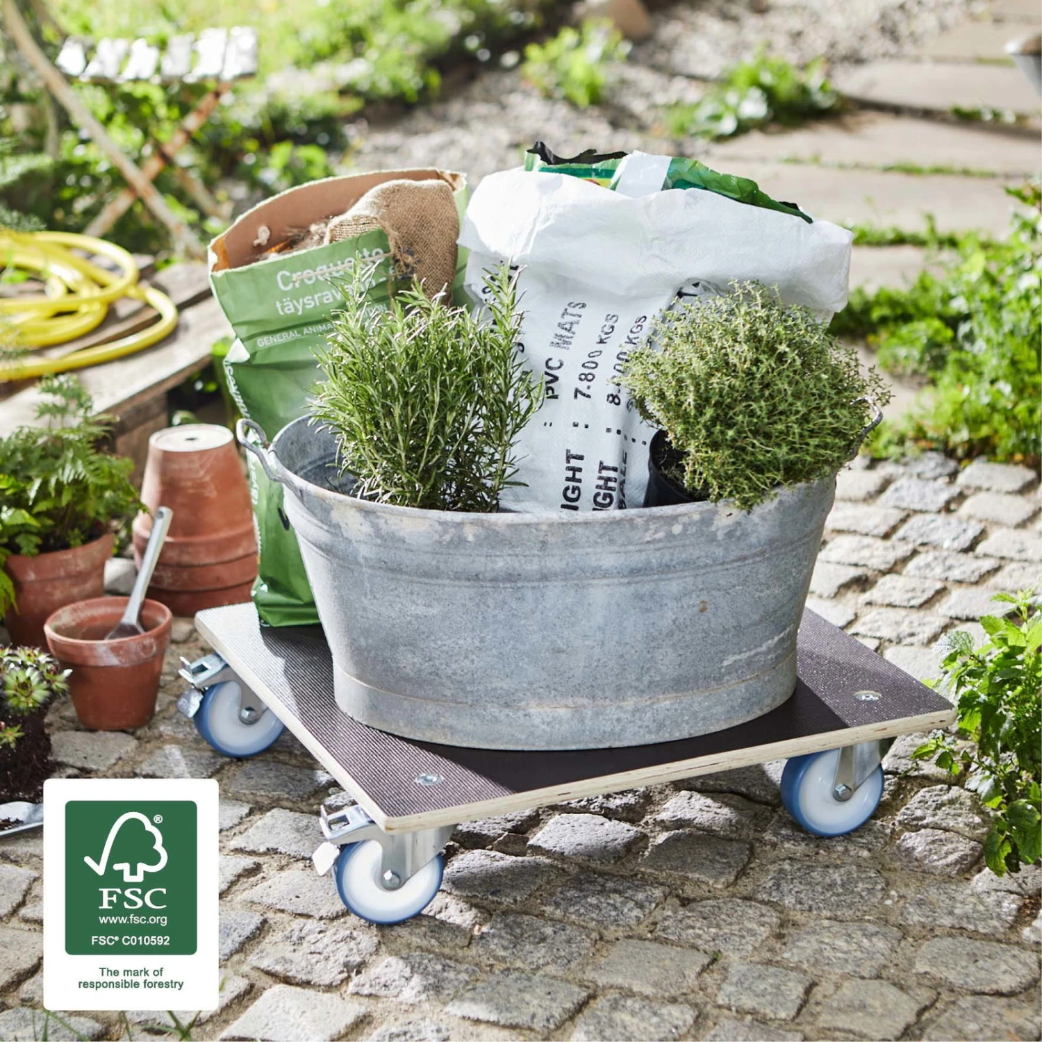 Dieser Pflanzenroller macht Ihre Kübelpflanzen mobil. Der Multi Roller Maxi GRIP mit zwei Feststellbremsen ist aus robuster FSC®-zertifizierten Birke-Multiplex-Platte gefertigt und überzeugt mit einer Tragkraft von ganzen 300 Kilogramm. Der Umzug Ihrer Palmen und Oleander ins Winterquartier oder die Umgestaltung Ihrer Raumbegrünung fällt Ihnen dank eines Pflanzenrollers ganz einfach.