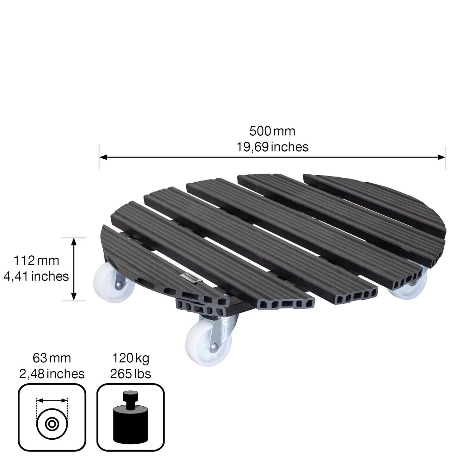 Multi Roller WPC, 120 Kg Tragkraft, Ca. 50 X 50 X 11 Cm