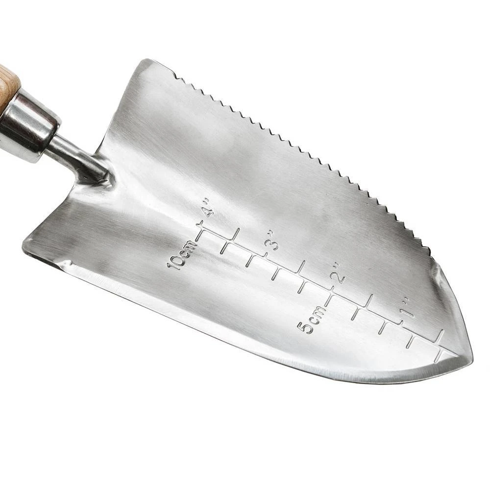 Diese vielseitige Handschaufel von Kent & Stowe macht sich nicht nur beim Umtopfen und Pflanzen hervorragend, sondern hilft Ihnen dank der gezackten Kante auch beim Jäten von Unkraut. Das spitze Ende erleichtert die Gartenarbeit und eine Tiefenskala sorgt für mehr Präzision. Das Blatt der Multifunktionsschaufel besteht aus widerstandsfähigem Edelstahl, der ergonomische Handgriff ist aus Eschenholz.