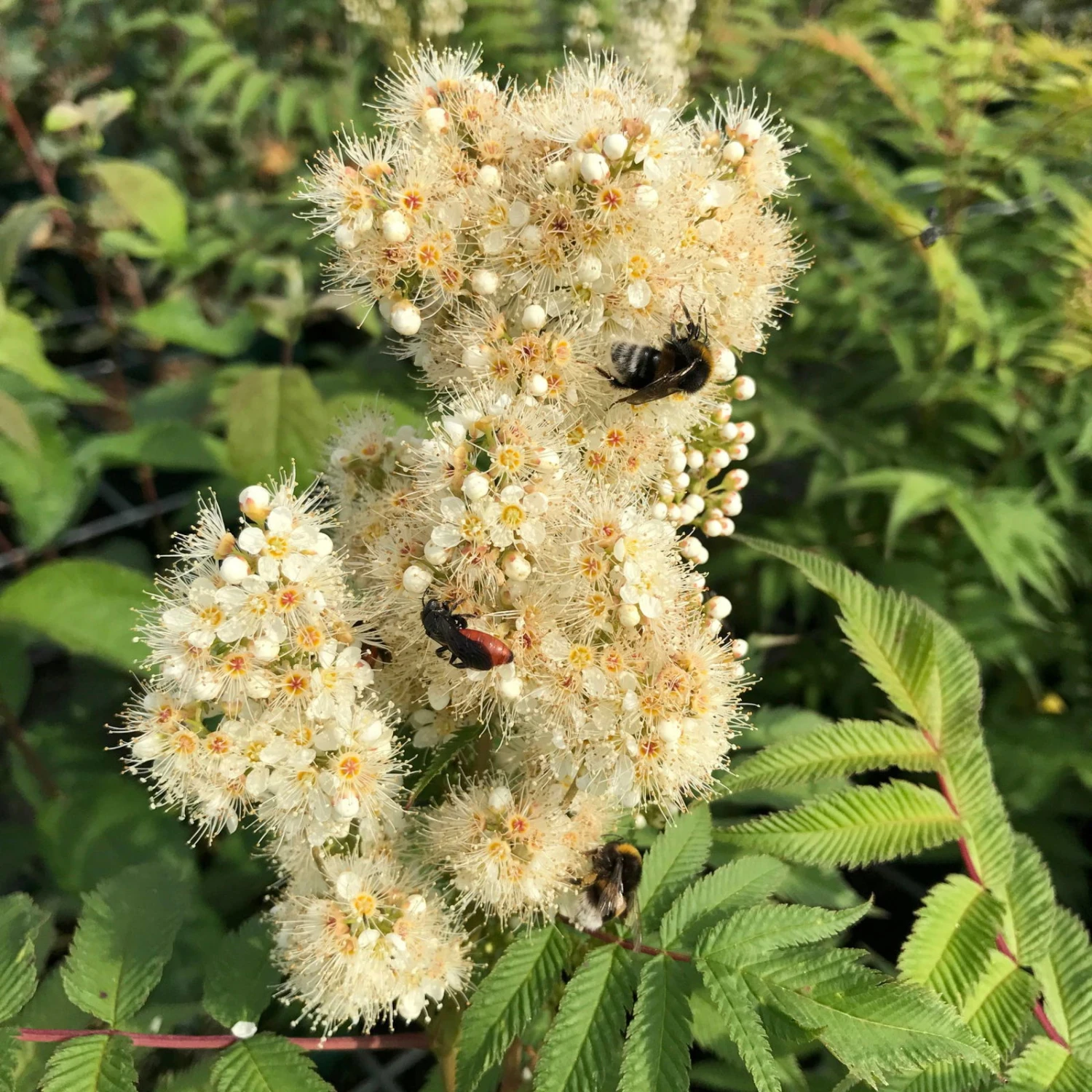 Die niedrige Fiederspiere Sorbaria sorbifolia ‚Sem'(s) ist eine gute Wahl, wenn es um das Pflanzen von Rabatten oder die Gestaltung von blühenden Hecken geht. Der Strauch erreicht Wuchshöhen von rund 100 Zentimetern. Besonders attraktiv ist die Sorte durch ihren rosa bis bronzefarbenen Laubaustrieb im Frühjahr. Im Sommer zieren die Sorte viele weiße Blütenrispen, die gerne und viel von verschiedenen Insekten besucht werden. Die Sorbaria sorbifolia ‚Sem'(s) ist eine unkomplizierte Pflanze, die sich sowohl in der Vollsonne als auch im Halbschatten wohlfühlt. Die Fiederspiere ist trockenheits- und frostverträglich und gegenüber der Bodenqualität weitgehend tolerant. Dieses Ziergehölz bildet gelegentlich Ausläufer.