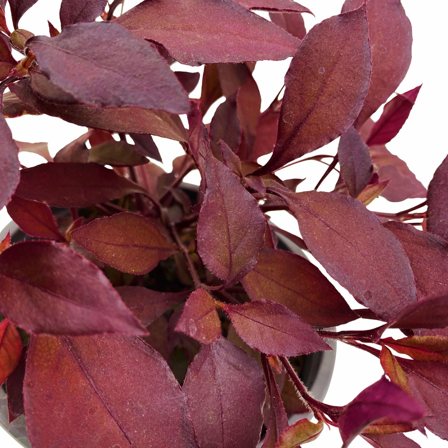 Der Papageienstrauch Alternanthera ‚Little Romance‘ ist in Ihrem Garten oder Balkonkasten ein Hingucker der besonderen Art: Diese erstaunliche Pflanze begeistert nämlich mit zweifarbigen, dekorativen Blättern. Während die Blattoberseite sich in Dunkelviolett präsentiert, erscheint die Unterseite in kraftvollem Rubinrot. Sie können mit gleichem Erfolg den einjährigen, kleinbleibenden Papageienstrauch ‚Little Romance‘ zum Bestücken Ihrer Blumenbeete und als Balkonpflanze einsetzen. An einem sonnigen und halbschattigen Standort fühlt sich die Alternanthera wohl. Eine weitere Voraussetzung für die erfolgreiche Kultur ist ein lockeres, nährstoffreiches und gleichmäßig feuchtes Substrat ohne Staunässe. Der Papageienstrauch ist eine hervorragende Blattschmuckpflanze und lässt sich mit Sommerblumen oder sommerblühenden Stauden zu farbenfrohen Kompositionen kombinieren. Aber auch in Kombination mit Besenheide, Chrysanthemen oder Silberblatt ist er eine schöner Blickfang.