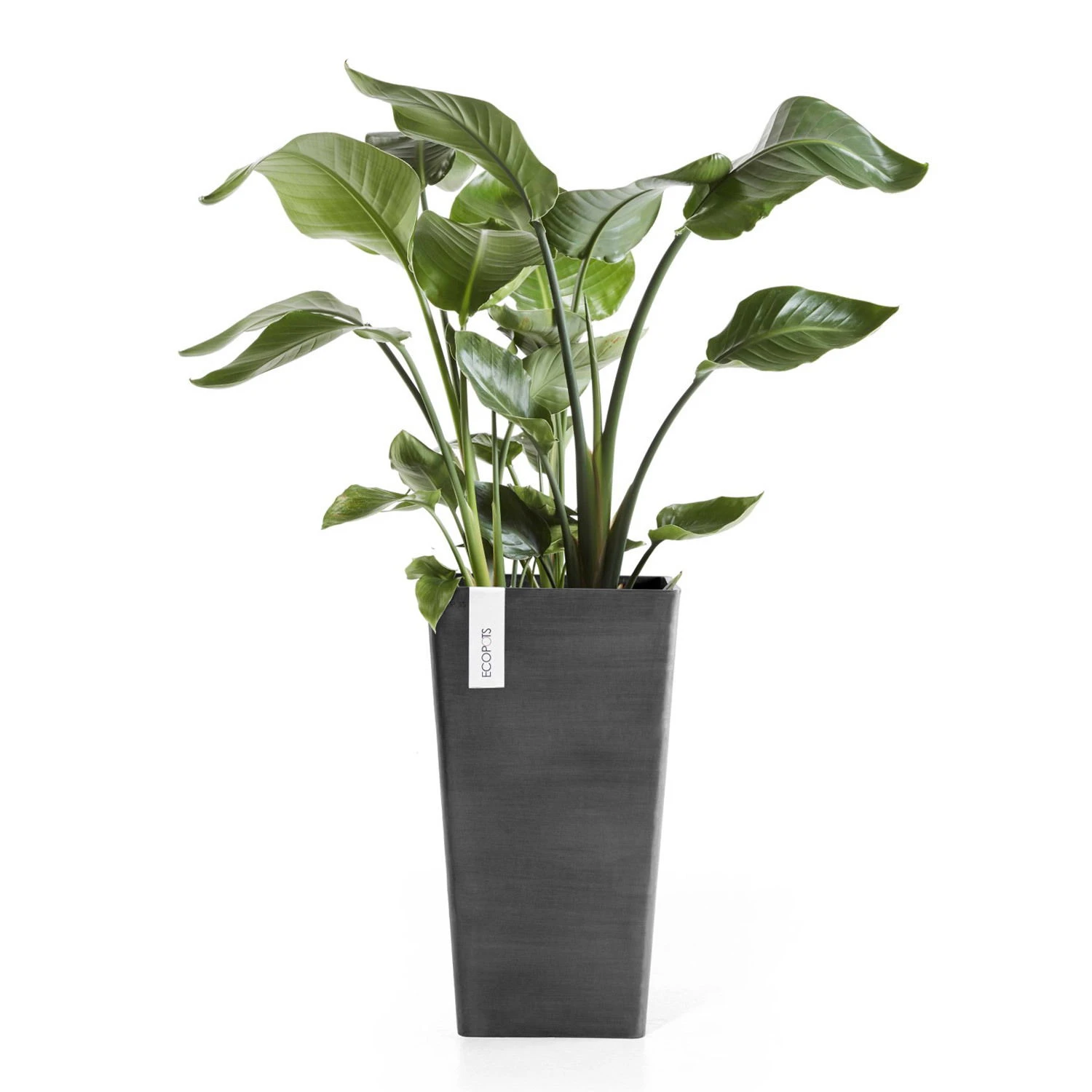 Das Pflanzgefäß ‚Rotterdam MidHigh‘ in angesagtem Dunkelgrau überzeugt durch eine klare Linienführung und einzigartige, von Hand bearbeitete Oberflächenstruktur. Dieser moderne, elegante Pflanztopf von Ecopots besteht aus recycelten Materialen und ist sowohl bruchsicher als auch frostfest. Einem Dauereinsatz outdoor steht daher nichts im Wege.