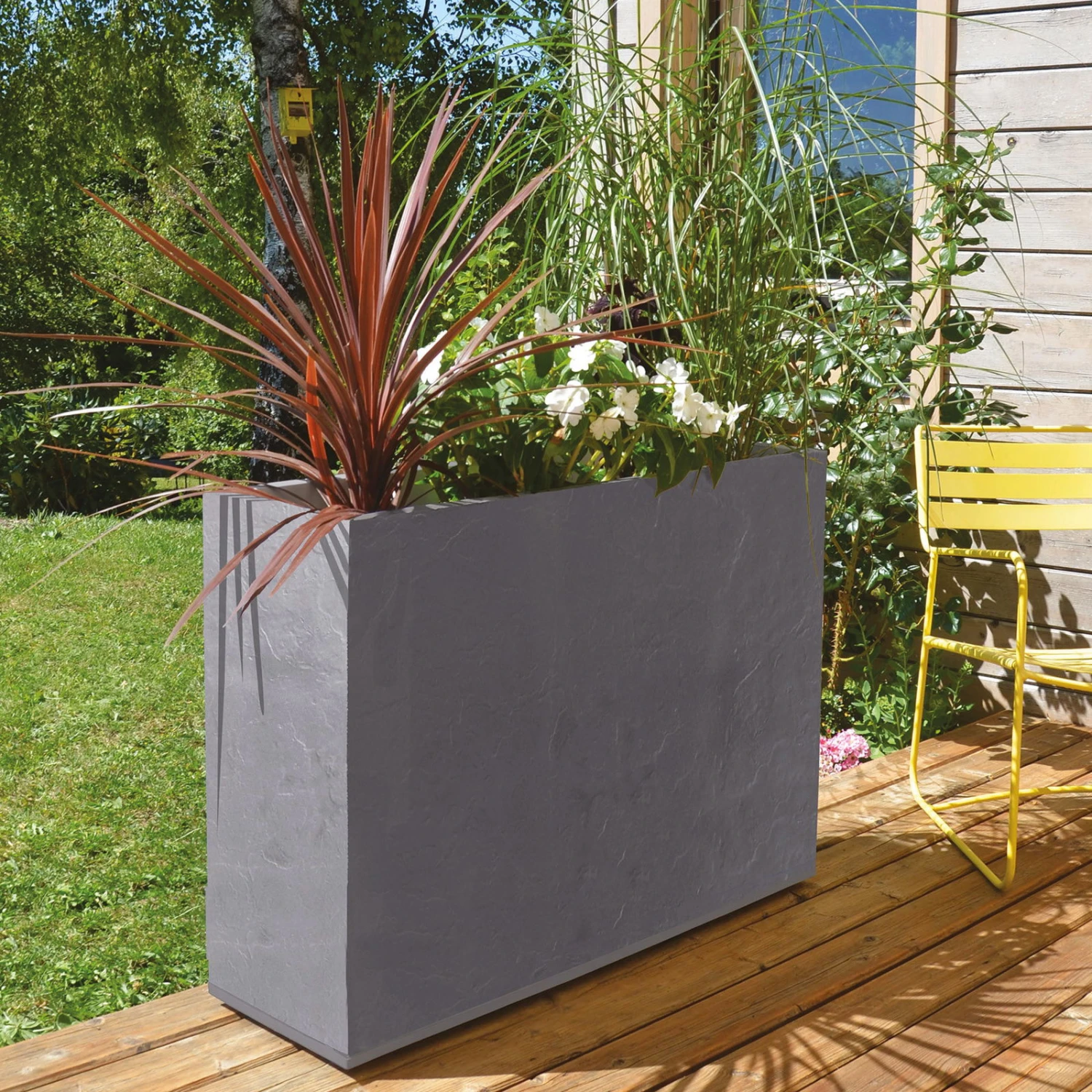 Der Pflanzkasten Volcania Crunch High in der dezenten Farbe anthrazit ist Ihre Möglichkeit, Ihre Terrasse, Ihr Office oder Zuhause mit dekorativen Zierpflanzen zu bestücken. Dieser stilvolle Pflanzkasten aus robustem Kunststoff in doppelwandiger Ausführung hat eine Wassersammlungszone für artgerechte Pflanzenpflege und ist absolut wasserdicht.