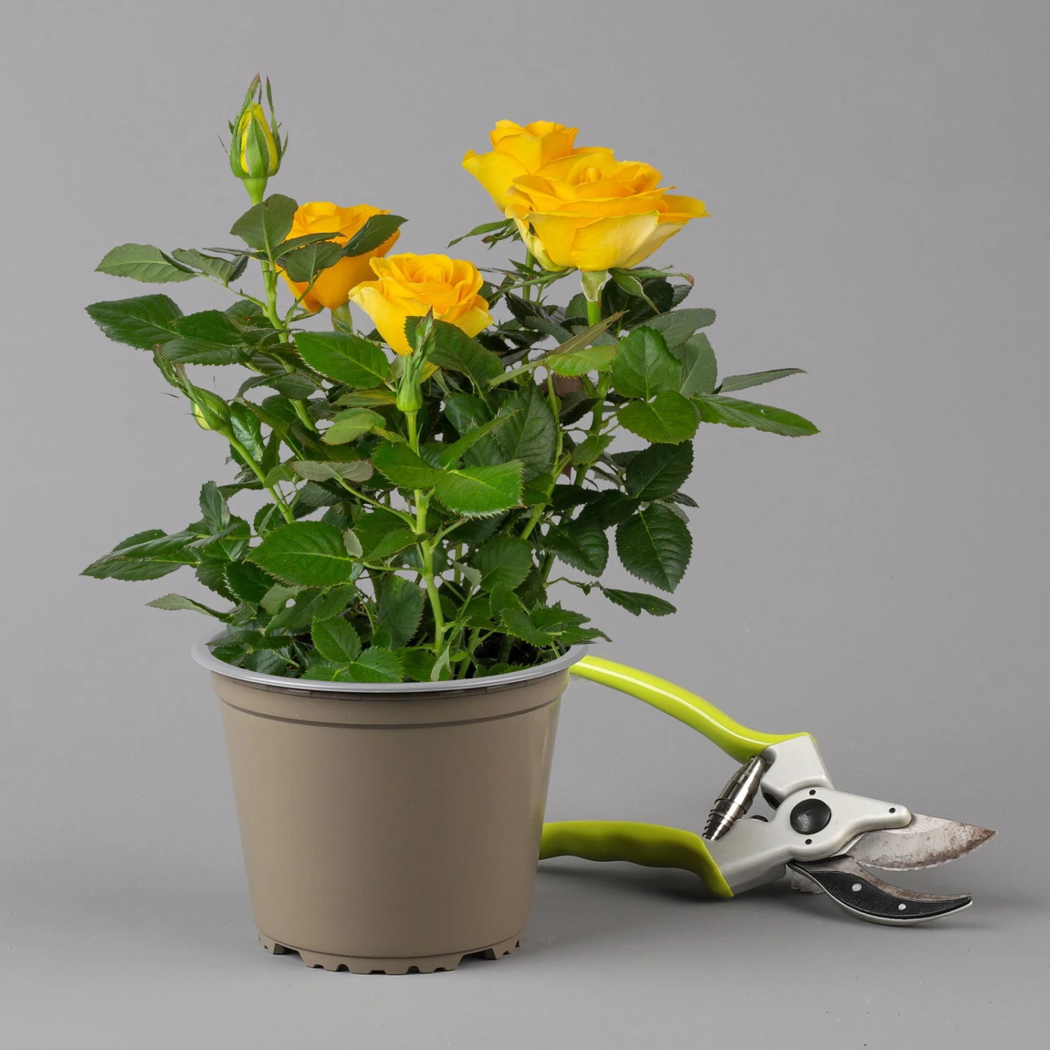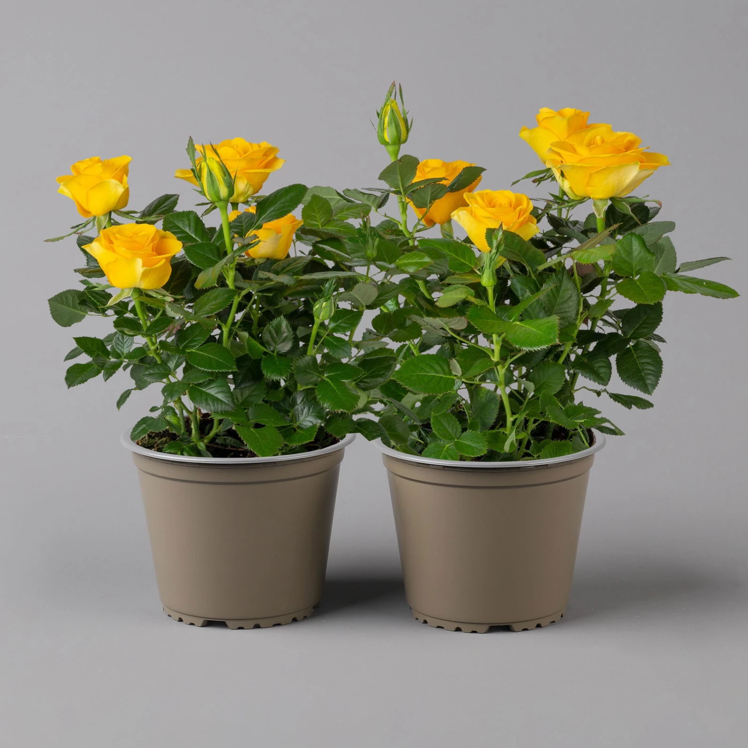 Die Rose (Rosa) überzeugt seit jeher mit ihrer Eleganz und ihren prachtvollen Blüten, ob als Schnittblume, im Beet oder als imposante Rosenbüsche. Mit unserem Set’s erhalten Sie formschöne Topfrosen in gelb, die sowohl als bezaubernde Tischdekoration als auch als Stilelement auf Fensterbank oder Schränken eine tolle Figur machen. Sobald keine Gefahr von Nachtfrösten mehr besteht, kann die Rose auch im Kübel oder Balkonkasten auf Terrasse und Balkon, oder sogar ins Beet im eigenen Garten ausgepflanzt werden.
