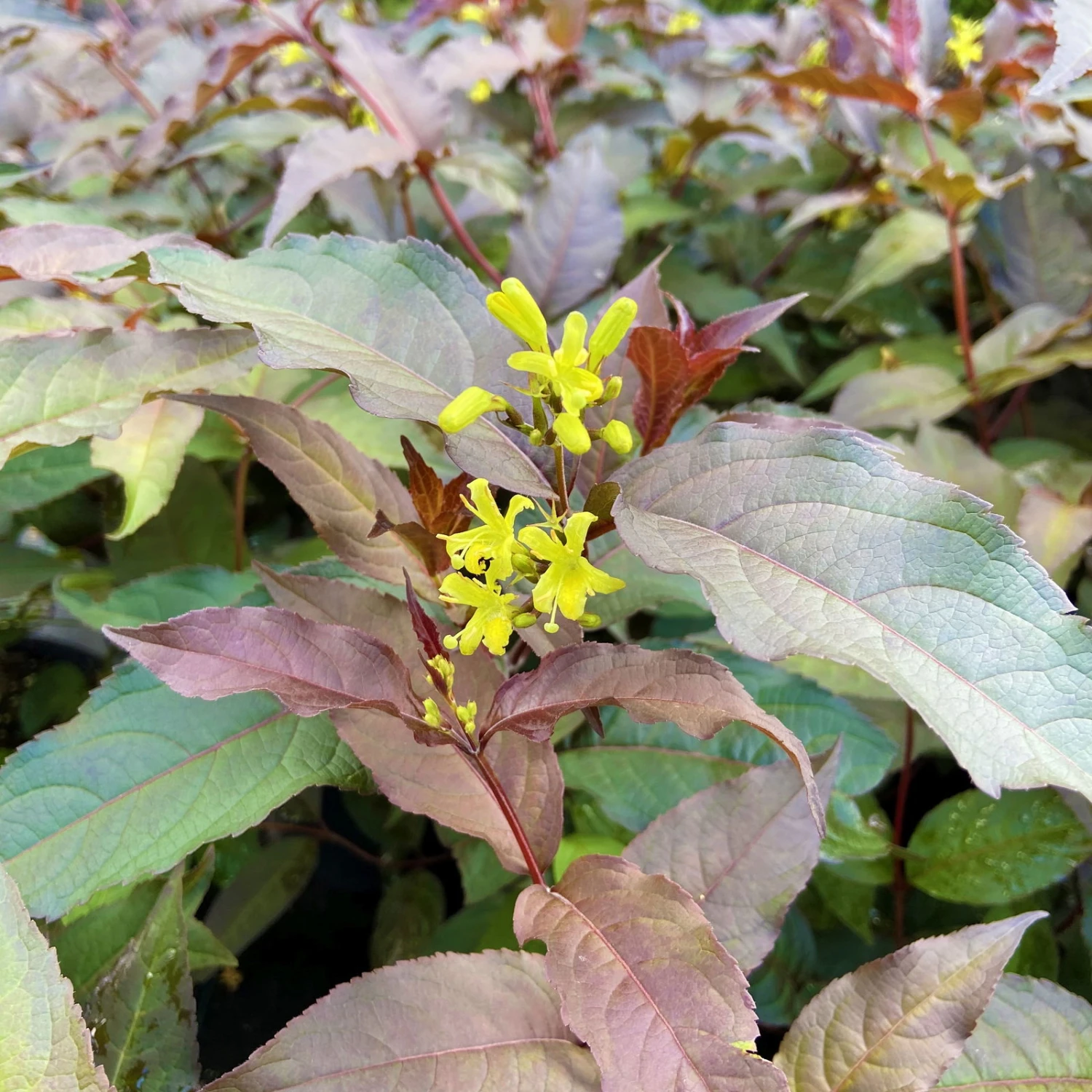 Die schwarzrotlaubige amerikanische Weigelie Diervilla rivularis ‚Kodiak® Black‘ ist mit ihrer Wuchshöhe von bis zu 120 Zentimetern ein kleinerer Strauch, der in jedem Garten zu einem außergewöhnlichen Highlight avanciert. Eine besondere Faszination übt der Kontrast zwischen dem Laub in Schwarzrot und den Blüten in leuchtendem Gelb aus. Während der Blütezeit im Juli und August kommt die Diervilla rivularis daher am besten zur Geltung. Die Weigelie ‚Kodiak® Black‘ macht auch als Solitär und in kleinen Gruppen eine gute Figur. Sie können mit dem Gehölz Kübel auf Ihrer Terrasse oder Ihrem Balkon bestücken. Dieser Kleinstrauch ist insektenfreundlich, trockenheitsverträglich und extrem frosthart. Ein sonniger Standort sowie durchlässige, nährstoffreiche Böden lassen optimale Wachstumsbedingungen für die Schwarzrotlaubige amerikanische Weigelie entstehen.
