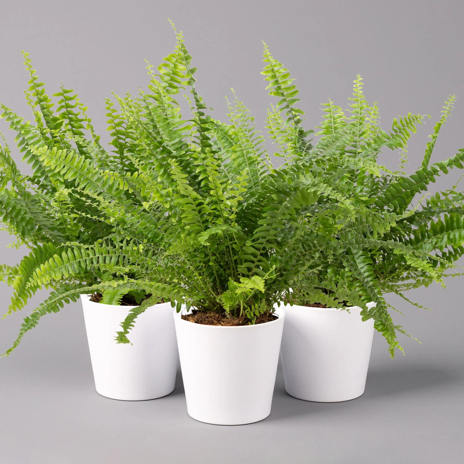 Schwertfarn ‚Green Lady‘ In Keramiktopf Weiß, Topf-Ø12cm, Höhe Ca 35 Cm, 3er-Set