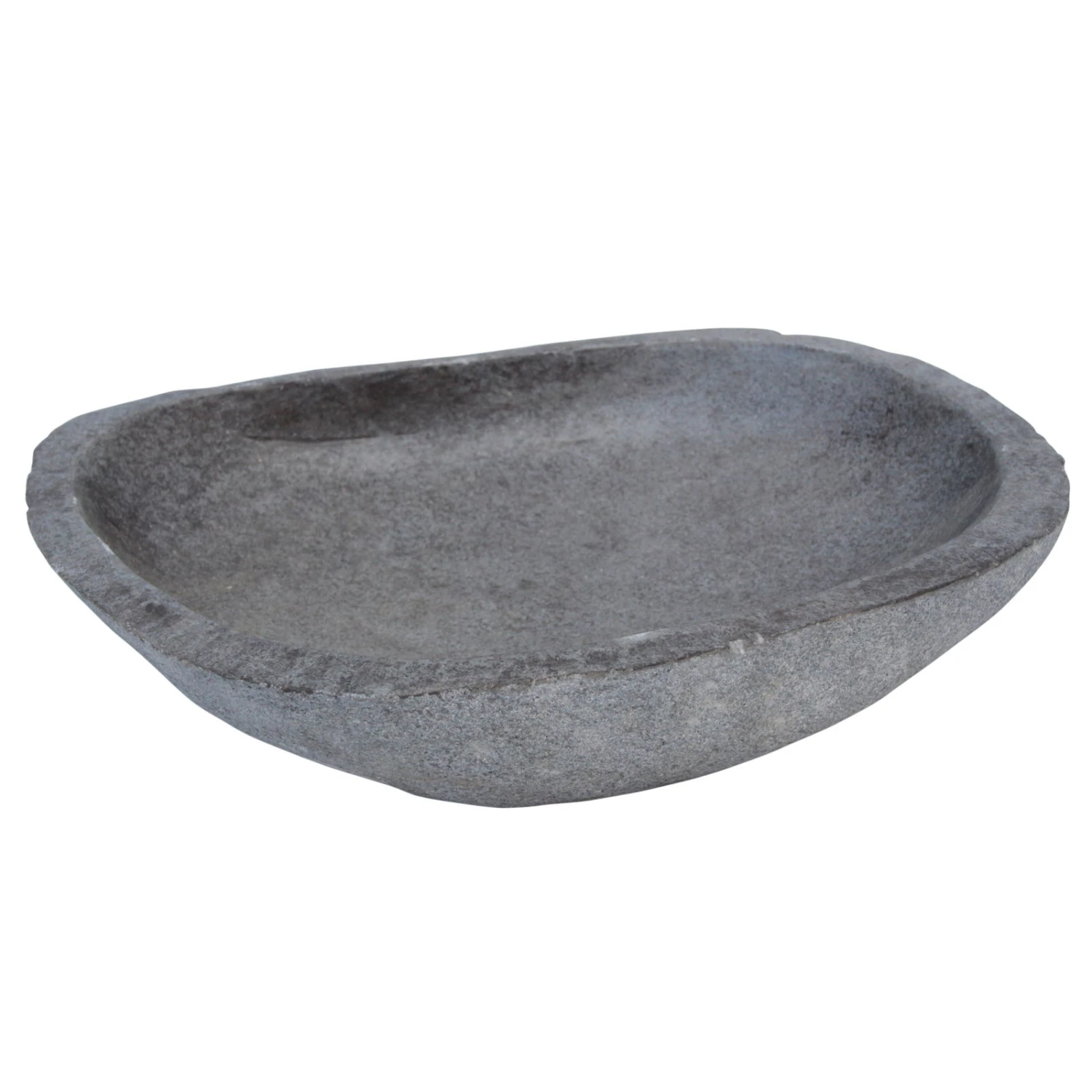 Vogeltränke ‚Fluss-Stein‘, Grau, Naturstein, 8 X 30 X 25 Cm