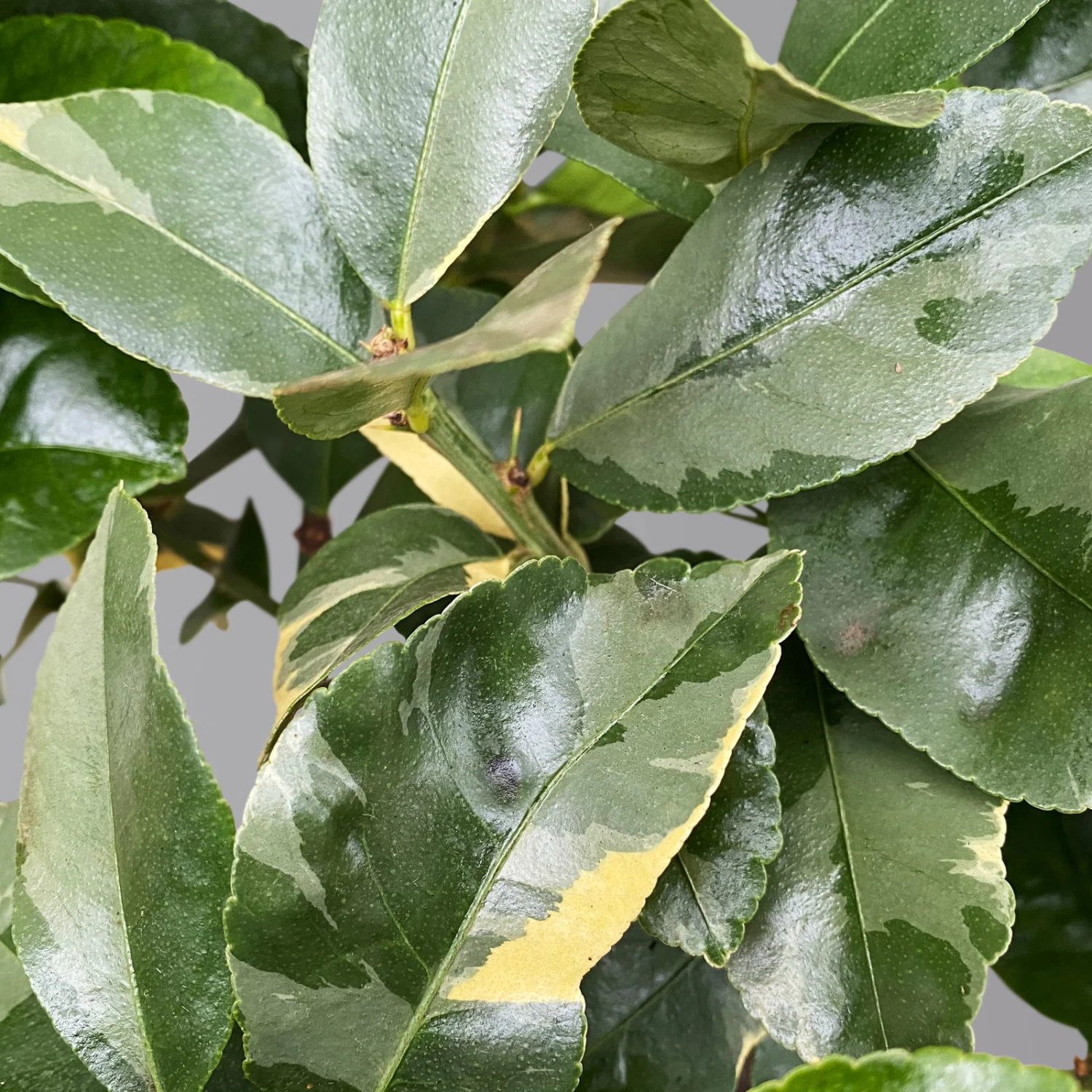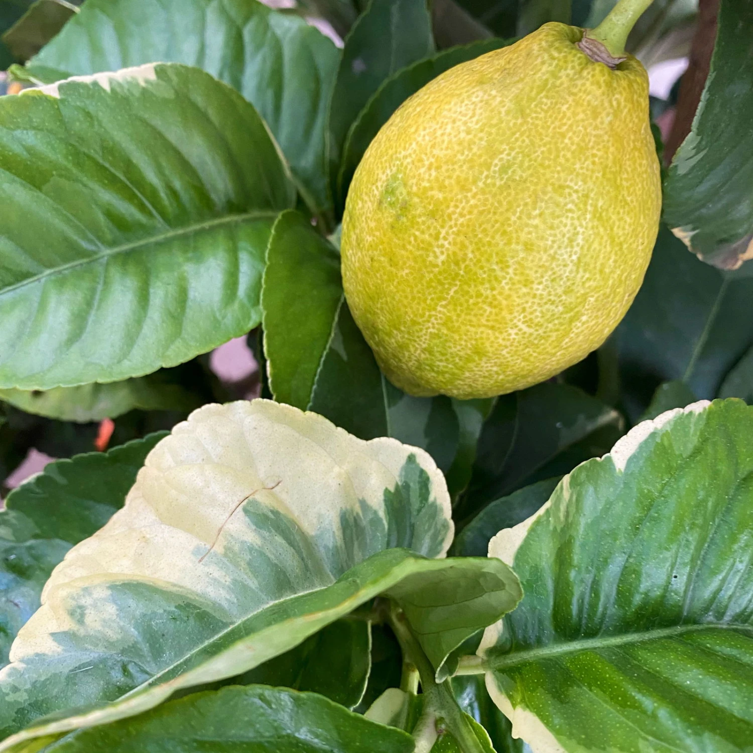 Die creme-grün panaschierten Blätter des Zitronenbaumes (Citrus limon ‚Variegata‘) begeistern das ganze Jahr über. Das Zitronenbäumchen bildet einen Stamm mit einer Krone, die teils etwas sparrig wächst. Sie wächst etwas schwächer, als die herkömmliche Zitrone. Die mediterrane Kübelpflanze kann eine Wuchshöhe von 4-5 Metern erreichen, die im Kübel aber nur selten erlangt werden.